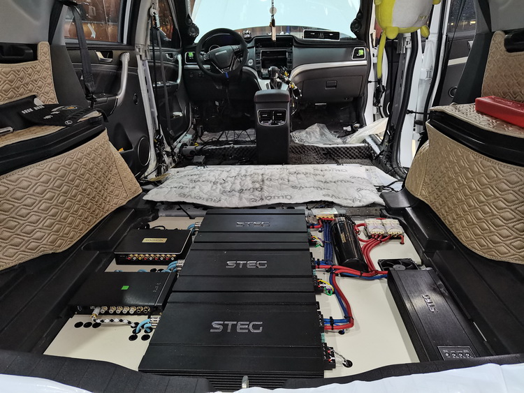 通过与改装技师的深入沟通,车主决定这次对音源部分进行升级。针对原车主机功率不足、解析力欠缺的问题,选用意大利STEG史泰格功放进行音响的二次升级。