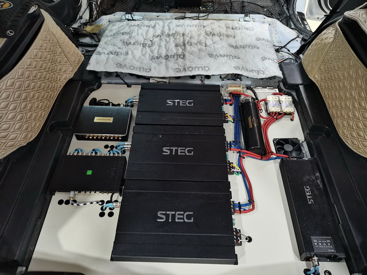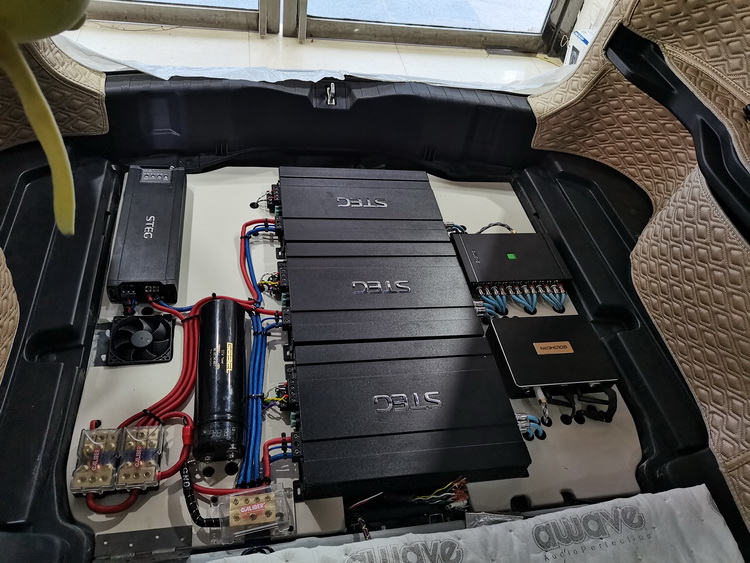 对汽车底盘、尾箱做隔音升级后,将音响器材安置在尾箱底部