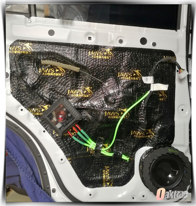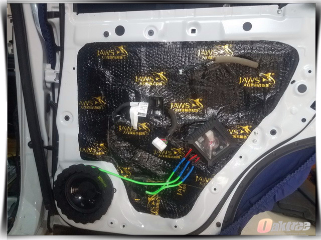 在使用大白鲨隔音材料,对门板做了隔音处理之后,郑州环亚汽车音响店的改装技师,将汽车的前后声场喇叭,都替换成了Rockfordfosgate来福T1650-S套装喇叭,它是来福旗下的高端音响喇叭,它使用了行业内领先的技术和非常科学的工业设计,所以其对音乐的还原度非常的高,而且具有良好的稳定性。为了增加低音部分的下潜力度,改装技师则为汽车添加了一只来福P3S-10寸超低音单元。