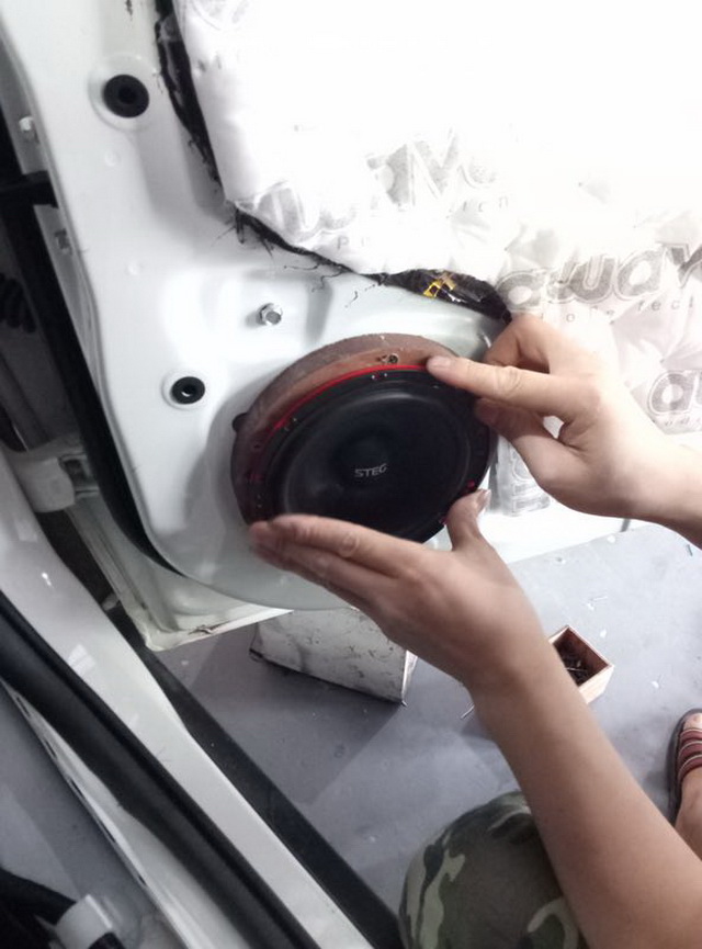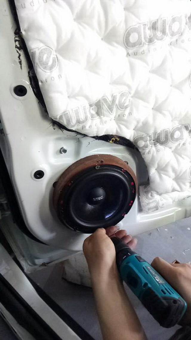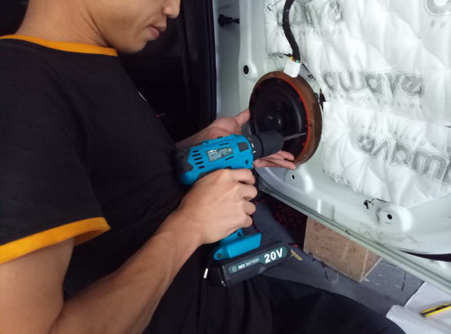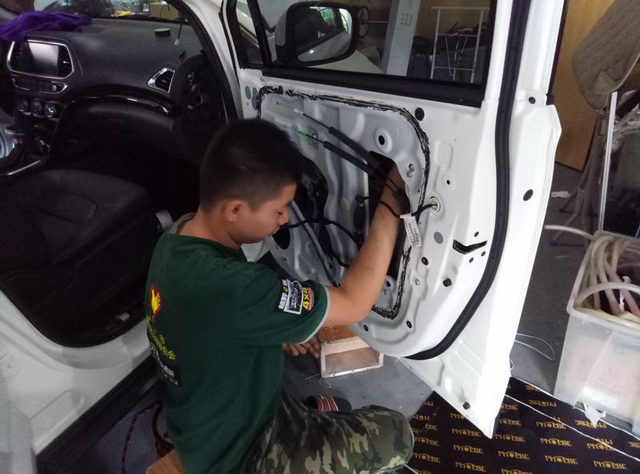 改装技师在进行史太格SQ650C中低音喇叭的安装