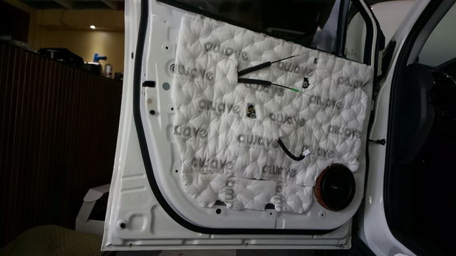 在使用爱威吸音棉对汽车的门板做了吸音处理之后改装技师将汽车的前声场喇叭更换成了史太格SQ650C喇叭,它的中低音单元采用了特质PP盆,这种音盆拥有良好的韧性和一致性,从而为车主带来了良好的音质回放。而高音部分清澈透亮,穿透力非常强,从而能过很好的提升声场的表现力。为了增加音乐的真实性,高州公元前車內音樂的改装技师还为汽车添加了一只爱威V6PRO 12寸小钢炮超低音单元。