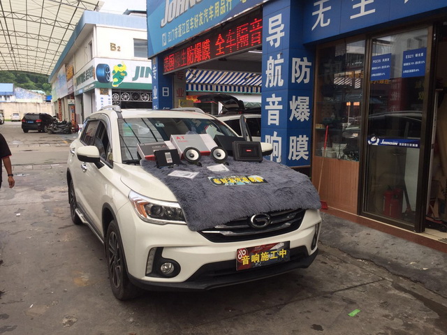 传祺GS4的原车仅用了4个声场喇叭,而且原车喇叭做工粗糙、用料简单,通过原车音响系统,所播放出来的音乐效果很差,根本无法将音乐的美感表现出来。为提升音响品质,车主来到江门车好友,对汽车的音响系统进行了升级。