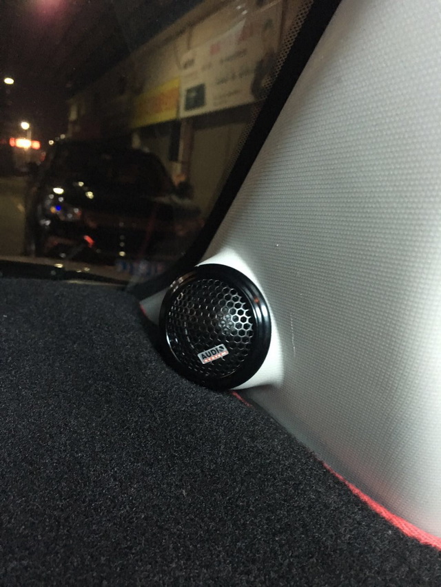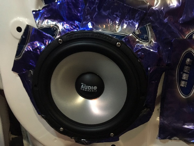 在使用隔音材料对门板做完隔音处理之后,江门好音乐的改装技师,将汽车的前声场喇叭,替换成了意大利Audiosystem音乐系统 AT650C套装,它的高音单元使用丝质振膜,这让音乐的高频部分清晰亮丽。中低音单元采用一次成型的聚丙烯锥盆,这类音盆稳定性好,而且具有很好的韧性。