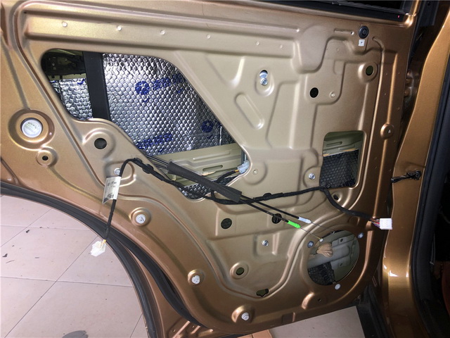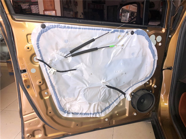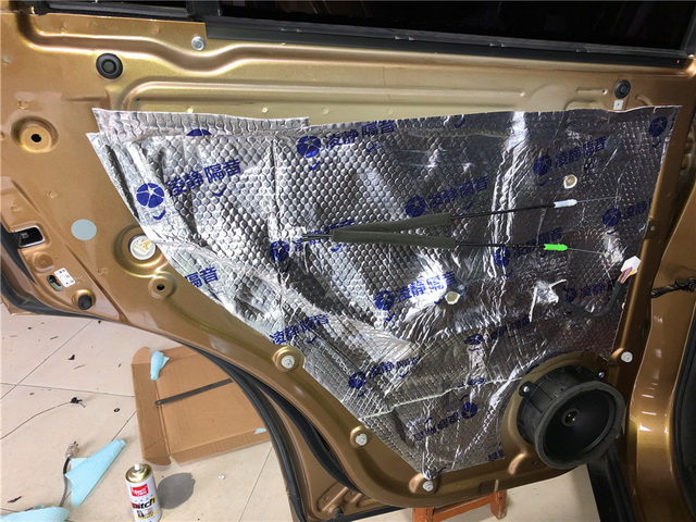 使用凌静隔音对汽车门板进行第一层隔音处理