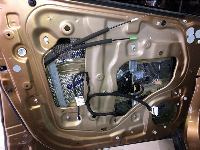 音响改装升级前,汽车做隔音是音响升级所必备的,也是喇叭音质的发挥的保证。但是拆开原车门板后可以发现,原车门板的隔音措施仅仅只有一层简单的塑料薄膜,这样的隔音措施几乎可以说丝毫没有用处。并且汽车门板充满了孔洞,噪音就可以通过门板的缝隙传入车内,从而影响音响的工作和乘车环境。