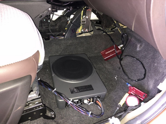 做完隔音后,改装师开始动手安装前声场喇叭,前声场喇叭车主选定了一套意大利史泰格MS650C套装喇叭,这套喇叭的碳纤维音盆有着高刚性,质量轻的特点,外观看上去相对内敛,但做工极有品相。并且它的特点是动态大,失真低,高还原,音乐的整体表现相当平衡,非常适合车主的需求。而为了不破坏车辆线路,改装师将中低音单元安装在了原位,而高音单元安装在原位,可以增强音乐的解析力,使音乐的细节丰富,动态好。