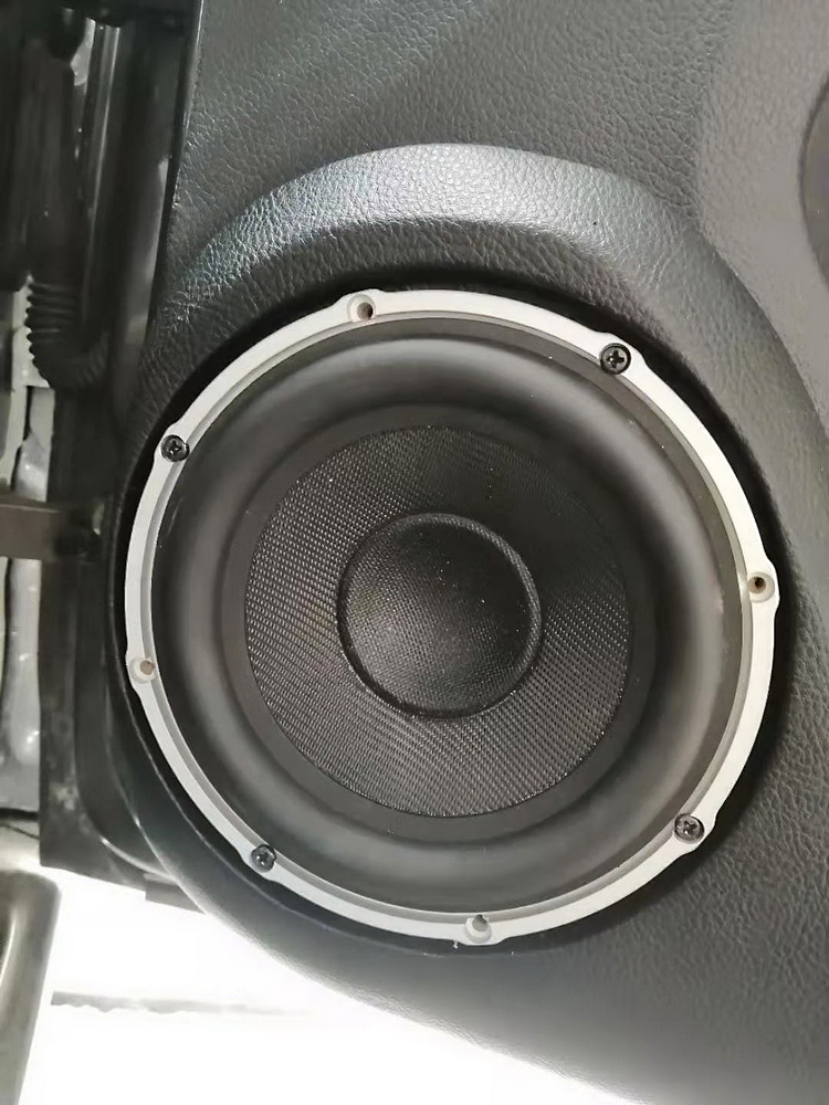 根据车主对音质的极致追求,技师在前声场选择了这套史泰格MSK顶级三分频喇叭。这套喇叭的高音单元,使用了涂有手工涂层的优质绢丝球形振膜,并采用强力钕磁推动,使高音有更好的指向性,同时有着非常线性的表现。而超薄设计中音单元,采用了纸质复合材料制成的锥形振膜音盆,使中频有更加优异的准确度与低失真性。中低音单元振膜,是由碳纤编织复合音盆振膜,并采用了高R形的悬边和硕大的磁路系统,具有良好的瞬态反应,以及超大的动态表现。