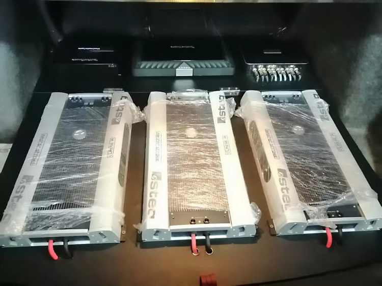 针对原车主机功率不足的问题,改装技师在汽车的尾箱底部,隐藏安装了三台史泰格甲类功放CLASSE A功放,它们的功率充足、功能强大,能够释放喇叭潜能,使声音表现更加清晰有力、富有质感。再添加一台歌航g3主机,能输出高清无损的音频信号,为好音质的表现打下坚实基础。