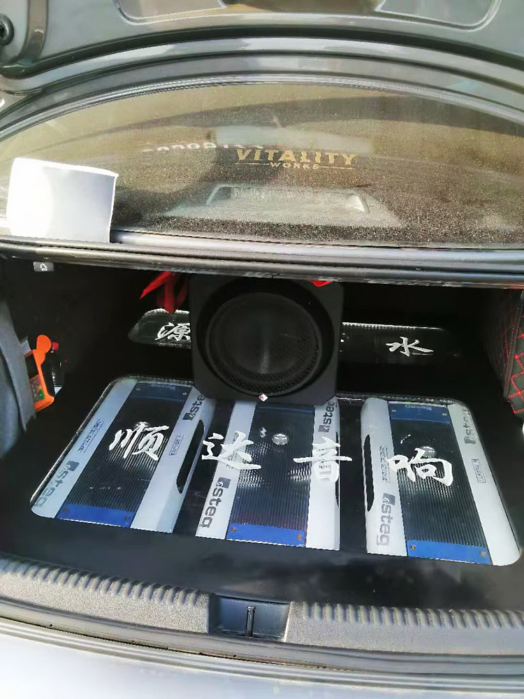 在将功放与主机隐藏在尾箱底部后,技师还在尾箱内添加了一只来福t1d4 10超低音单元,并使用来福T1500.1功放推动,以够增加低频的下潜力,使低音表现强劲有力,音乐的感染力十足。