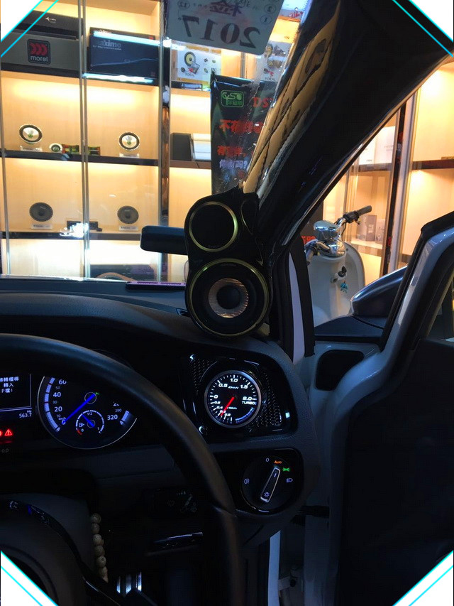 劲浪三分频高音和中音单元倒模安装在汽车A柱