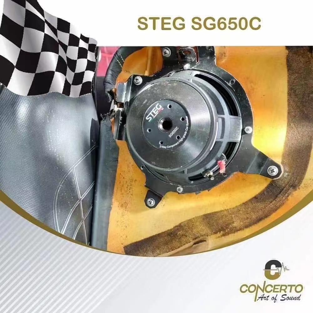 隔音完成后,技师将前声场喇叭升级成了STEG SG650C套装喇叭,这套喇叭的中低音单元,使用的是由复合金属和PORON材料制作而成的振膜,而且使用了强力磁铁进行驱动,使得中低音部分动态效果好,弹力十足;高音使用了丝膜球顶设计,让高频部分自然通透,穿透力极佳;而为了增加音乐的丰富度,技师还为前声场添加了 STEG ML35中音单元。