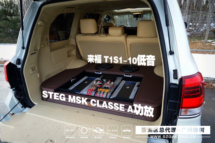 将器材隐藏安装到位后,技师还在尾箱底部倒模安装了两台美国来福低音T1S1-10超低音,使用意大利史泰格K12500功放推动后,能够带来浑厚有力的重低音,让音乐的听感真实、氛围感浓厚。