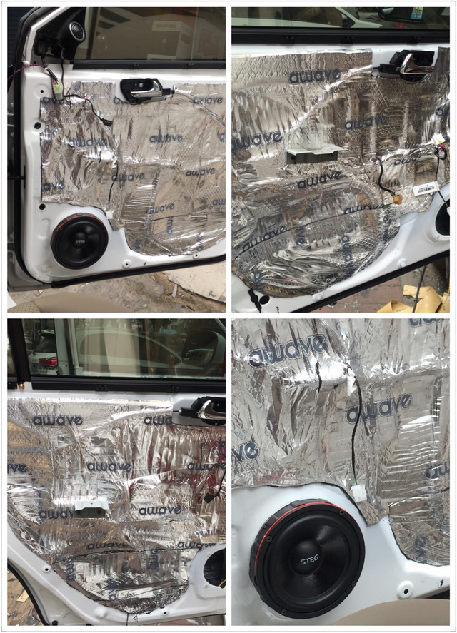 在对汽车门板做了隔音处理之后改装技师将汽车的前后声场喇叭更换成了意大利SETG不同系列的产品,之所以如此搭配是在保证整体统一性的前提下让音乐有更多的展现形式,最后惠州胜华的改装技师还为汽车添加了一只超低音awave-V5,从而让福田汽车的音响系统更为完善。