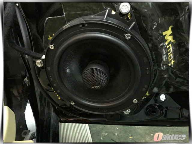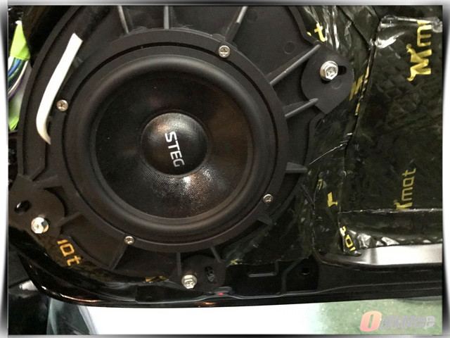在使用大麦隔音材料对汽车的门板做了隔音处理之后,深圳怡声的改装技师,将汽车的前声场喇叭,替换成了史太格 STEG ST650C套装喇叭,它的中低音单元使用了特殊配方的纸质音盆,所以其播放出来的音乐丰富饱满,而高音部分使用的则是丝质振膜,这让高频部分清晰亮丽,细腻动听。后声场使用的史太格 STEG SQ650,也与前声场喇叭形成了优势互补。为了增加音乐的真实性,改装技师还为汽车音响系统添加了一只爱威awave V4超低音单元。