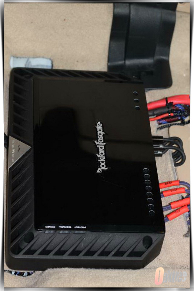 为了解决原车主机解析力不高,造成的音频信号不佳的问题,深圳祺丰汽车音响店的改装技师,为汽车主机添加了一台爱威DSP6-8音频处理器,而为了保证声场喇叭的功率输出稳定,改装技师则为汽车添加了一台美国来福T400X4功放。
