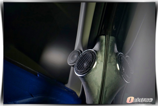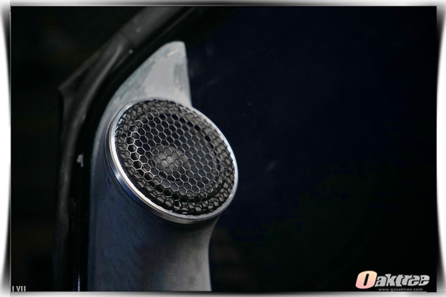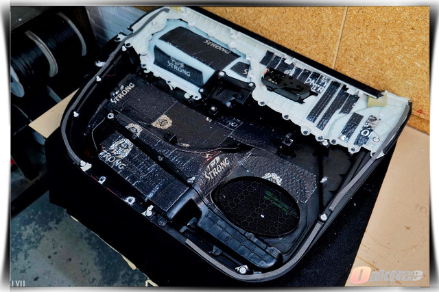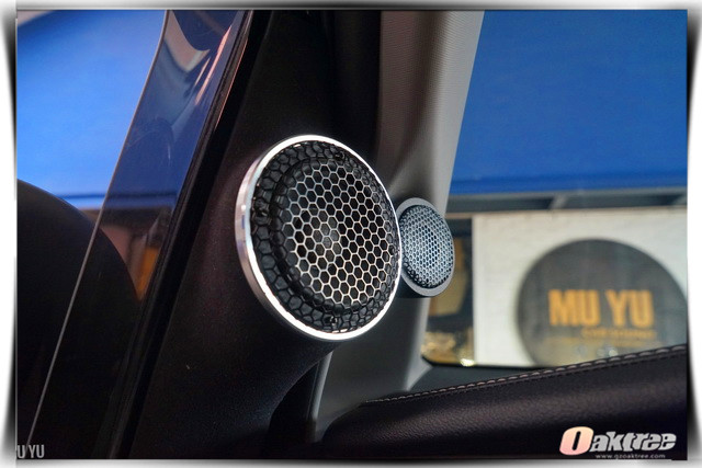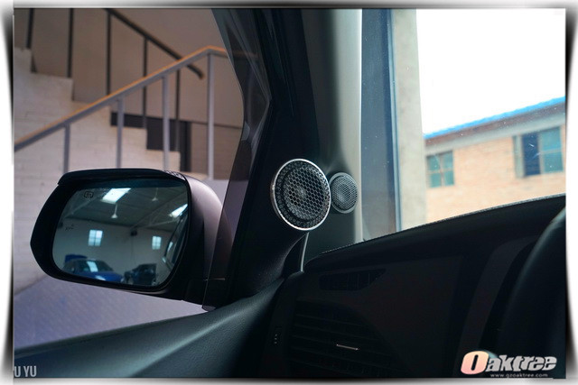 在使用狮龙隔音材料,对汽车的门板做了隔音处理之后,北京木鱼MUYU汽车音响店的改装技师,将汽车的前声场喇叭,替换成了一套由意大利史太格STEG SG650C套装和SQ30中音,组合而成的三分频套装喇叭,它所播放出来的音乐真实细腻、层次感分明。尤其是中频单元的添加,更是让音响系统在人声部分的表现更加饱满。后声场使用的意大利史太格STEG SQ650同轴喇叭,则与前声场喇叭形成了优势互补,从而让音乐的展现更加丰富。