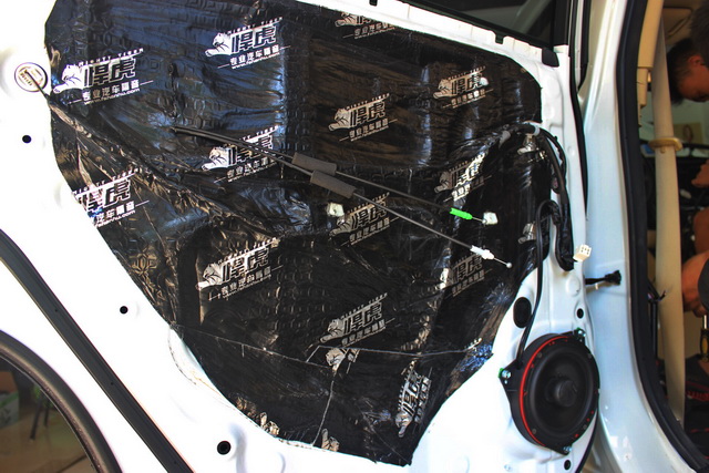 在使用悍虎隔音材料,对汽车的门板做了隔音处理之后,改装技师将汽车的前声场喇叭,替换成了史太格STEG Me650C套装喇叭,它的中低音单元使用了特殊纸浆的高端纸质音盆,虽然外观看起来不太美观,但对音乐还原度非常的高。后声场使用的史太格STEG SQ650喇叭,也与前声场喇叭形成了音乐味道的统一性。