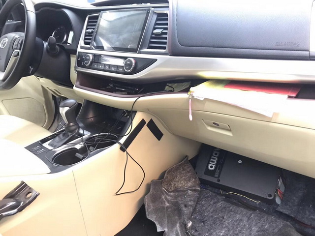 丰田汉兰达原车仅用了6个声场喇叭,而且原车喇叭做工粗糙、用料简单,导致汽车播放出来的音乐效果非常的差,无法将音乐的质感给表现出来。为了提升音响的品质,车主在朋友的推荐下,来到惠州稔山达声汽车音响店,对汽车做了音响的升级工作。