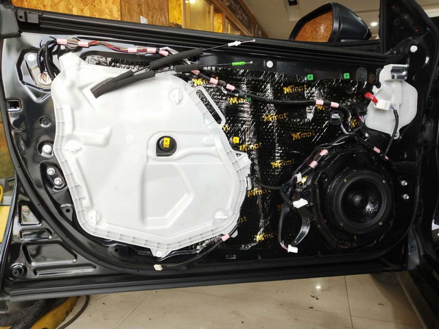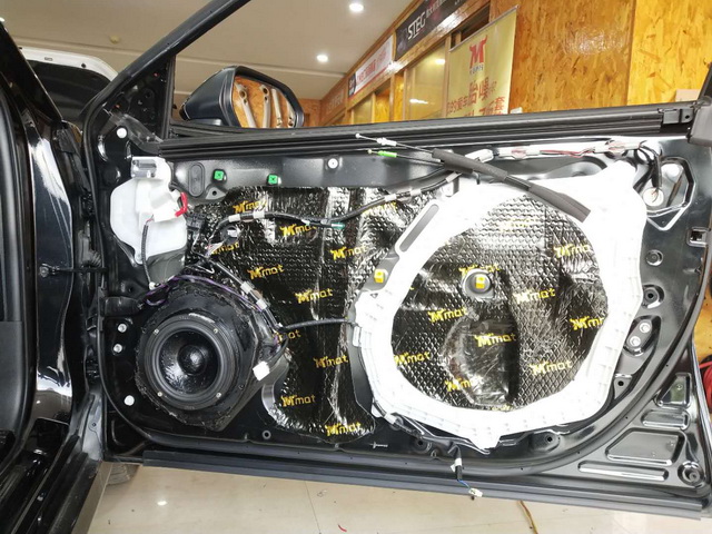 为了降低噪声对音响品质的干扰,改装技师使用大麦隔音材料,分别对汽车的门板和尾箱做了隔音处理,这就降低了风噪和共振噪声,对音响品质的干扰,从而为声场喇叭创造了一个良好的工作环境。