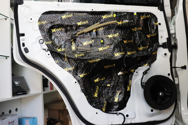 改装技师使用大麦隔音对后门板进行了双层隔音处理