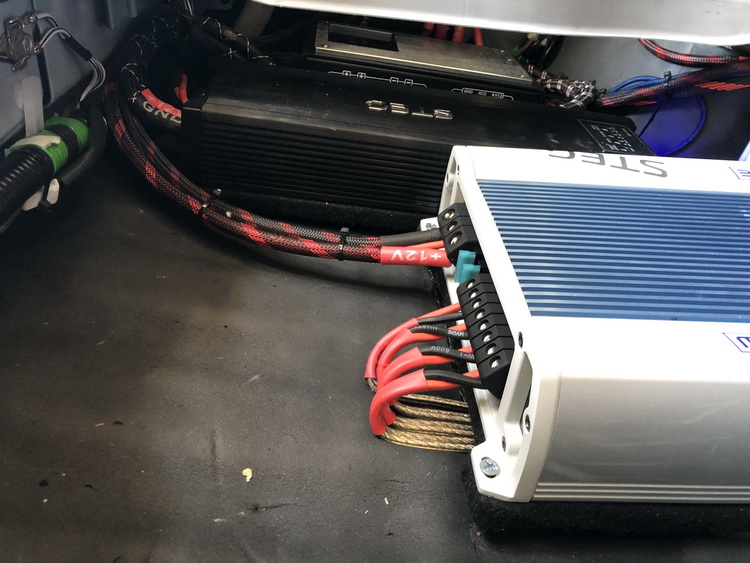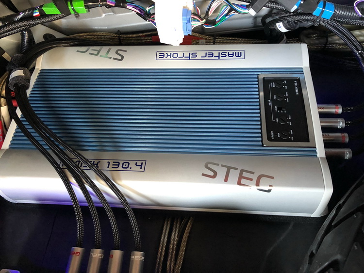 在音源部分,技师在汽车的尾箱底部施工,为原车主机添加了一台爱威十二路处理器与光纤解码,能够输出高清无损的音频信号,并提供强大的调音功能,营造出更具舞台感的声场表现。并且技师还为汽车添加了两台意大利史泰格M.MSK130.4功放功放,为喇叭提供充足、纯净的功率输出,使声音表现清晰有力,质感十足。在使用专业的捷宝音频线材连接,将器材合理隐藏至尾箱底部后,改装技师还为汽车添加了一台洛克电神电源,使系统运行更加安全、高效。