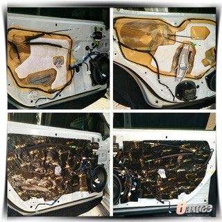 门板主要包括风噪的传入和自身的共振。因此改装技师先对门板做了止振处理,然后又对其做了密封处理。门板的隔音处理不仅能够降低噪声,同时还能够提升音响的品质。底盘和尾箱主要是低频共振的噪声,因此改装技师先使用大麦隔音减震胶做了止振处理,然后又使用吸音棉做了第二层的密封处理。
