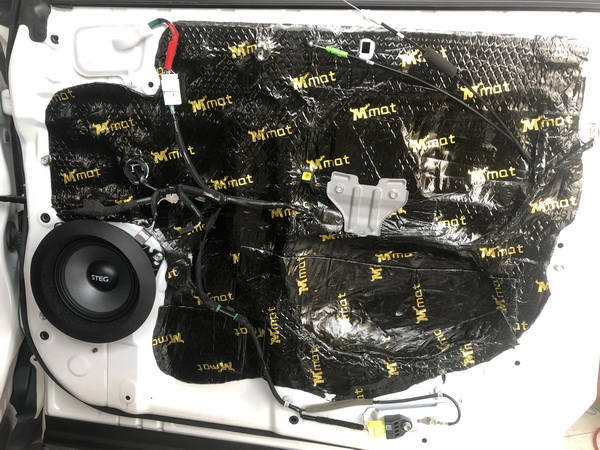 后声场安装意大利史泰格MS650C与前声场喇叭音乐风格保持一致性,这款喇叭是史泰格M大师系列入门级产品,具有低阻值高灵敏度,大音圈设计,使得声音呈现自然通透,让后排乘客也能感受到音乐魅力。改装师将中低音单元进行原位安装。