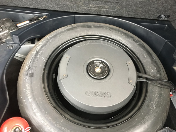 在安装马来西亚爱威DSP6音频处理过程中,改装师将各线材进行捆绑,并整齐盘绕在器材周边,原车主机较小,一台音频处理器的加持可以将音源进行优化的同时也可以对喇叭功率进行助力。同时为了增加低音下潜力度使声音呈现磁性感和感染力,改装师安装了一台马来西亚备胎炮,隐藏式安装,复原后基本看不出改装痕迹,并且不占用后备箱空间。
