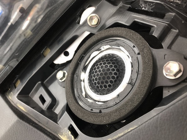 前声场的高音单元改装师将其安装在汽车仪表台原位上,在将旧喇叭拆除之后,改装师将高音喇叭细致安装在原位上,基本无损原车线路。