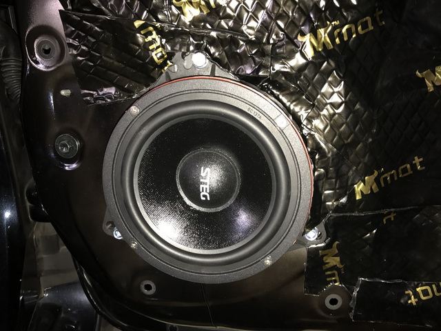 改装技师将前声场的意大利STEG ST650高音单元安装在仪表台两侧,而中低音单元安装在前门板上,不同音频单元的配合让听者从不同的角度感受到音乐的魅力,让听者仿佛置身于音乐的世界当中一样。后声场则选用的是同品牌的意大利STEG SQ650同轴喇叭进行补充。