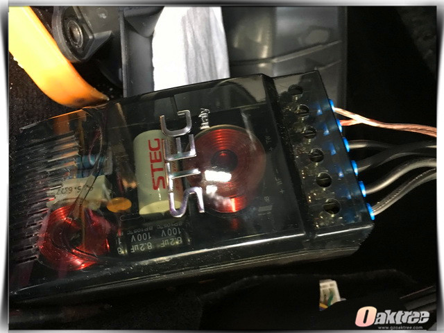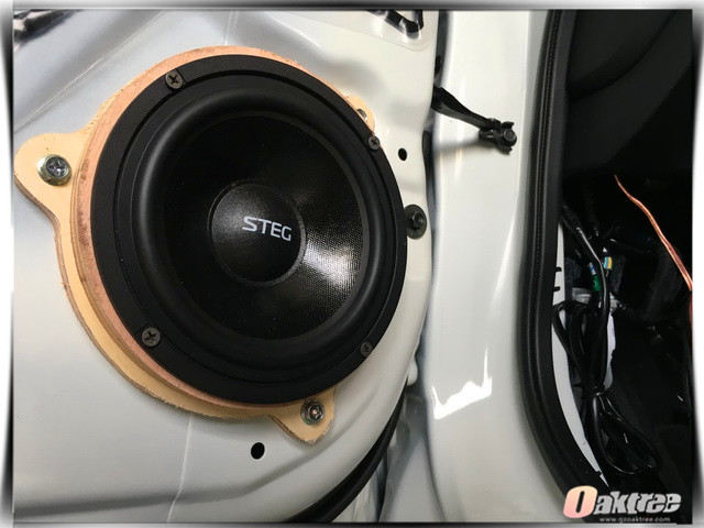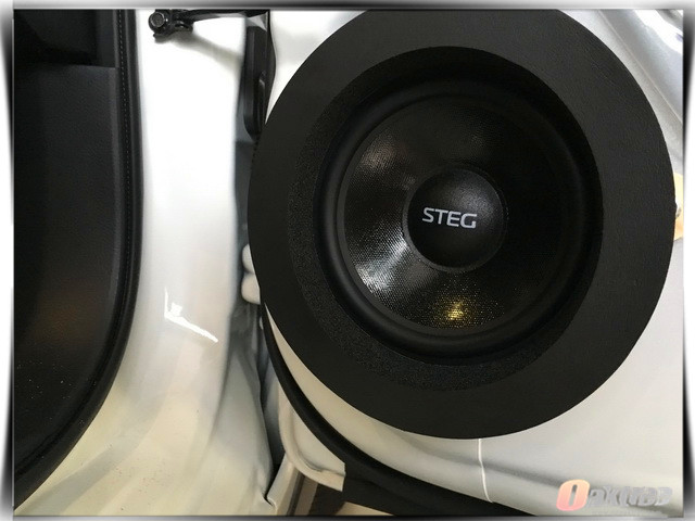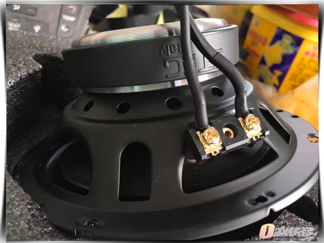前声场升级使用的STEG史太格ST650C套装喇叭使用了进口橡胶边和特殊配方纸质音频,它能够使得中低音部分的灵敏性更高,而且STEG史太格ST650C套装喇叭还拥有良好的耐热性和刚性,非常适合在汽车等恶劣的环境下工作。为保证功率的输出稳定,改装技师还为其添加了一台健伍功放进行安装。