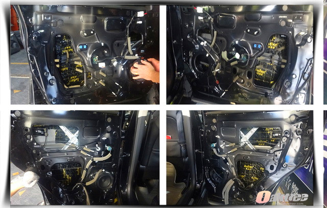 使用隔音材料对汽车门板做第一层的隔音处理,降低门板共振噪声