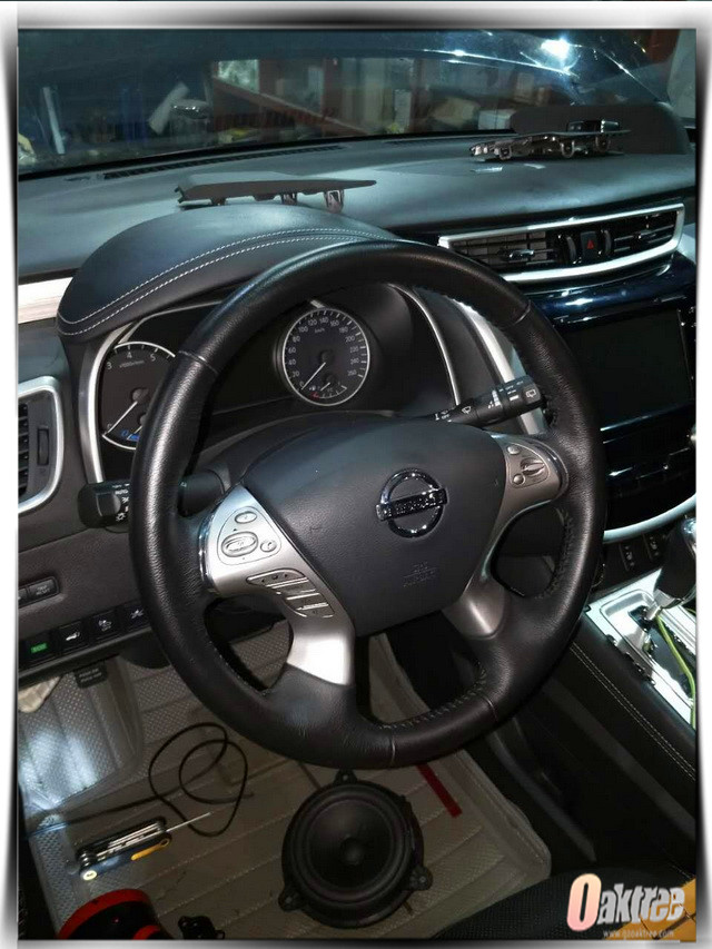 该款日产楼兰的原车使用的6个声场喇叭材质主要为纸质+塑料,而且没有功放的推动和超低音单元的渲染。所以汽车播放出来的音乐十分的单薄,整体声场也比较偏低,难以打动车主。车主是一个对音乐质感要求非常高的人,为了提升音响的品质车主经朋友的介绍来到深圳车爵仕对汽车做了音响的升级工作。