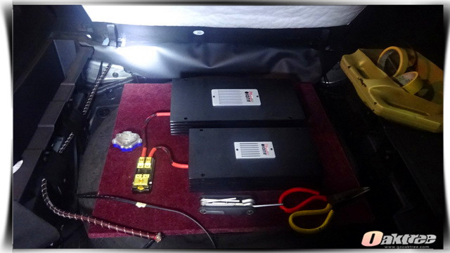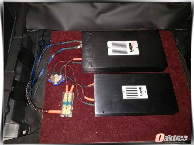 汽车音响系统的工作环境恶劣,音响系统的功率不稳是常有的事情,这不仅会影响音响的品质,还会对音响器材的使用寿命产生很大的影响。因此改装技师为汽车的前声场和低音单元各添加了一台audiosystem意大利音乐系统功放。