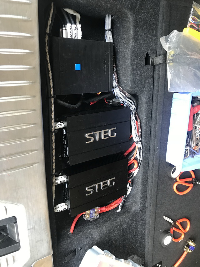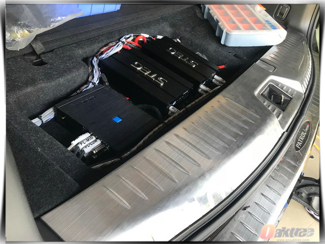 车主在平时比较喜欢流行音乐,因此佛山三水声之韵的改装技师,将汽车的前声场喇叭,替换成了史太格STEG st540C套装喇叭,它的高频高亢亮丽,中低音频饱满有力。为了使得音乐的层次感更加分明,改装技师还为前声场喇叭,添加了一对史太格STEG sq30中音。而为了增加低音部分的下潜力度,改装技师则为汽车添加了2只爱威awave V7小钢炮。