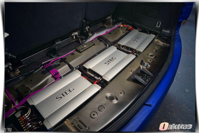 为了增强低音部分的下潜力度,特意添加两台awave爱威V5小钢炮低音喇叭,使低音的呈现更加收发自如,低音效果更具有弹性和质感。而稳定的功率输出是保证喇叭单元稳定工作的前提条件,于是为前声场喇叭以及低音喇叭各添加3台意大利STEG史泰格K202功放。这款功放具有强大的功率输出,外形美观别致,重要的是具有防止短路的功能,内部采用发烧级的元器件,使功放运作更加出色稳定。