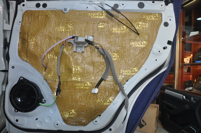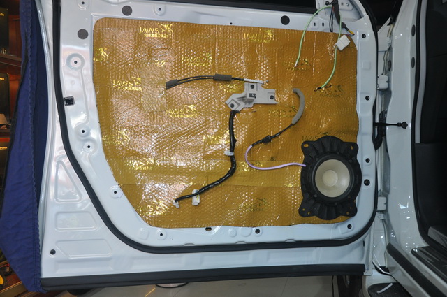 使用大白鲨隔音对门板做双层隔音,为声场喇叭创造一个良好的工作环境