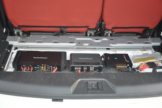 虽然升级使用的音响器材品质出色,但同样其功耗也非常的大,因此改装技师为汽车音响系统,添加了两台功放,这就为喇叭提供了充足的功率供给,让喇叭的发挥更加的稳定出色。而为了保证音源的质量,改装技师还为汽车音响系统,添加了一台芬朗DSP8音频处理器。