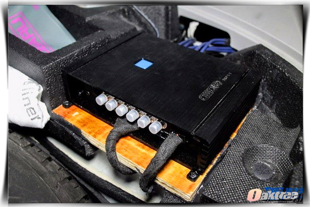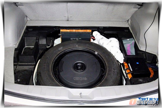 车主在平时喜好人声和流行音乐,因此厦门靓之声的改装技师,在使用大麦隔音对门板做了双层隔音处理之后,将汽车的前声场喇叭,替换成了一套由史太格ST650C套装喇叭和音乐系统AE30中音组合而成的一套三分频套装喇叭,史太格ST650C所播放出来的音乐高亢靓丽,真实细腻,但是在中频部分的饱满度还不是特别理想,而音乐系统AE30中音单元则弥补了这个缺点。为了让音乐的表现更富有感染力,改装技师还为汽车添加了一只爱威AWAVE AST11TP备胎低音炮。