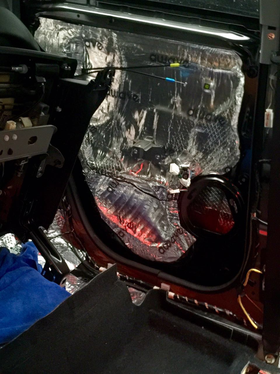 使用awave隔音材料对汽车门板做双层隔音处理,为汽车声场喇叭创造一个良好的工作环境