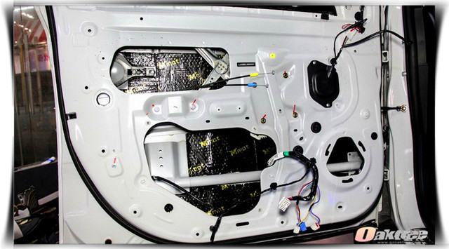 使用大麦隔音材料对汽车门板做第一层的隔音处理,降低门板共振噪声