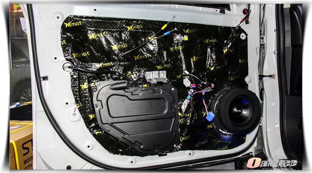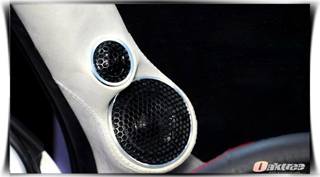 在使用大麦隔音材料,对汽车的门板做了隔音处理之后,厦门靓之声的改装技师,将汽车的前声场喇叭,替换成了一套由史太格ST650C STEG套装喇叭和史太格STEG SQ30中音组合而成的三分频套装喇叭,它所播放出来的音乐层次感分明,细腻度更高,而且能够让中频部分更加的丰富饱满。为了增加音乐的真实性,改装技师则为汽车添加了一只爱威AWAVE小钢炮V5D超低音单元。