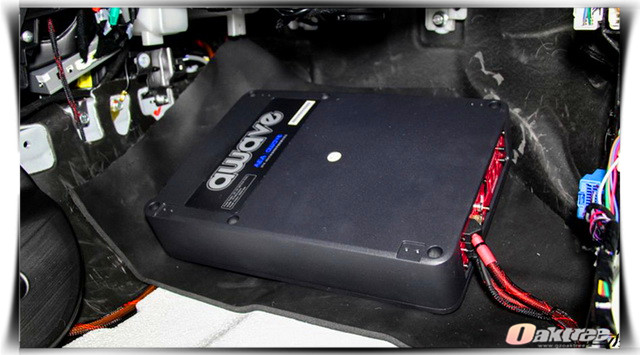 在音源端厦门靓之声的改装技师,为汽车添加了一台爱威AWAVE DSP6,它既可以解决原车主机解析不高,造成的音频信号在细节方面出现缺失的问题,同时又可以充当功放,起到保证声场喇叭功率输出稳定的作用。