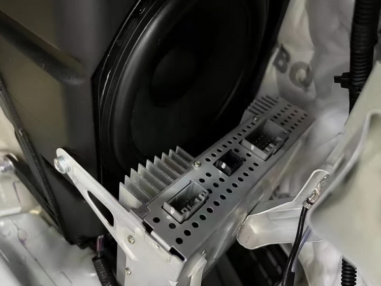 升级完成后的音响系统,从外观上来看没有丝毫改动过的痕迹,但是试听音响效果,就可以发现其音质有了非常大的提升,也完美解决了原车音响系统在低频部分的不足,让车主可以听到更加优质的音乐。