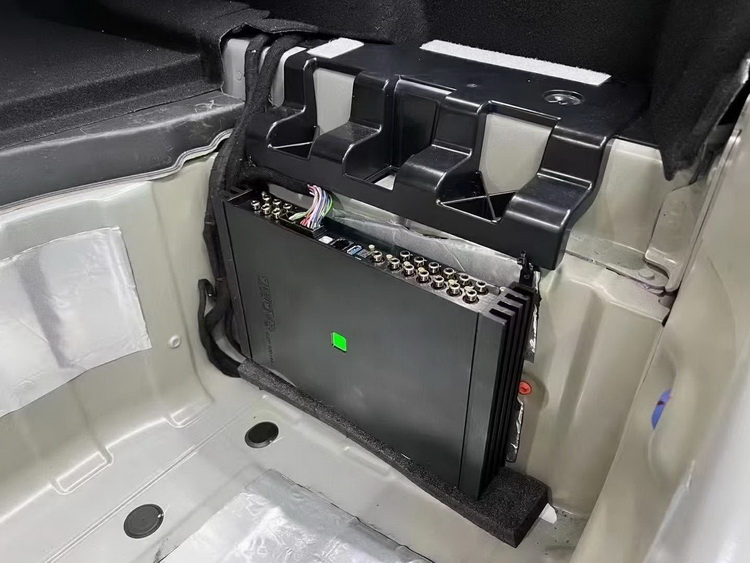12路awave12Damx和这台特斯拉Model3高配P版的结合也非常的完美。首先它使用的专车专用线束对接,无需剪线,也不需要对汽车的原有线路做任何的改动。其次它的体积小巧精致,将其安装在尾箱侧壁非常合适,不会占用任何的储物空间。12路awave12Damx还拥有智能混音功能,可以满足车主个性化的听音需求。