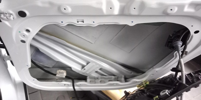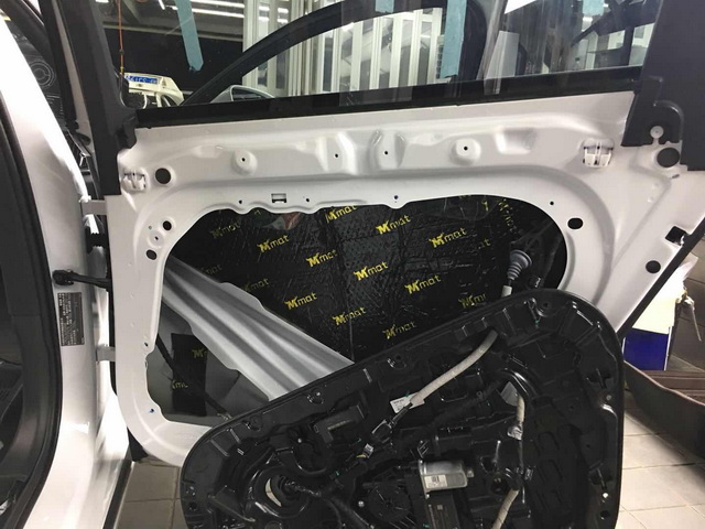 使用大麦隔音材料对汽车门板做第一层的隔音处理,降低门板共振噪声