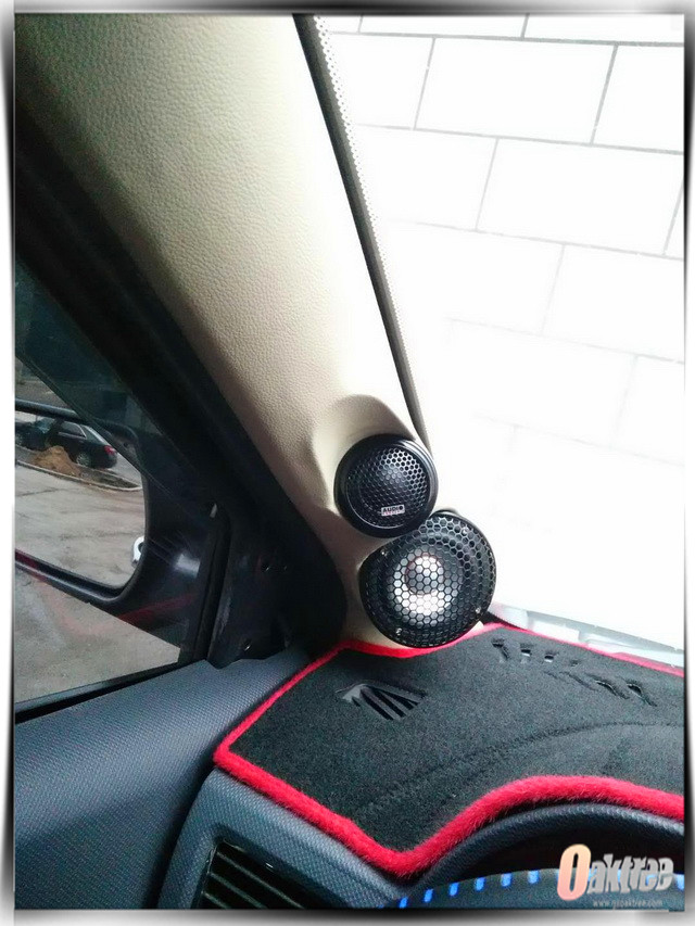 高音和中音单元安装在汽车A柱