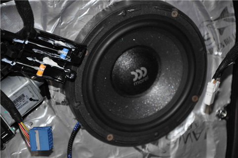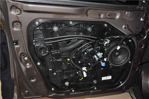 为了给声场提供较好的音厂空间改装技师先使用大白鲨双层隔音材料对门板进行双层隔音,从而减少风噪以及高速行驶门板钣金的共振噪音,用卡莱461A作为音频处理器,后采用摩雷优特声603主动三分频喇叭作为前声场喇叭,摩雷优特声603主动三分频喇叭拥有多项摩雷独特的创新技术,专注于高品质,高性能的独特风格,拥有强大的声压及超高的性价比,高音清澈,中音自然,低音响亮采用一体化底盘和潜沉气动设计,让声音结实干净有力度。后声场再配上史太格SQ650C,该音响声色准确、整体平衡度强,协调搭配,补充整个音场。史太格K401功放的添加为声场喇叭提供充足的功率。为保持整车音厂平衡师傅再补充美国K牌CWS104超低音,令车主大为喜欢。