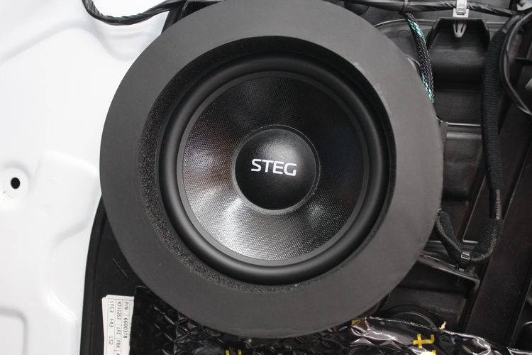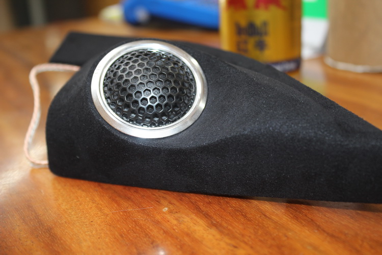 之后技师将意大利史泰格 MT 650C安装在前声场位置,他的声音表现精准自然,富有活力,中低音采用复合纸盆并在表面进行了喷银沙处理,加双折环轻质高弹性橡胶悬边,让中音温暖润泽,弹性十足;高音单元的外表是CNC高光处理的铝架,采用丝膜求顶振膜,高音柔亮,泛音丰富。