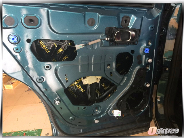 使用隔音材料对汽车门板做第一层的隔音处理,降低门板共振噪声